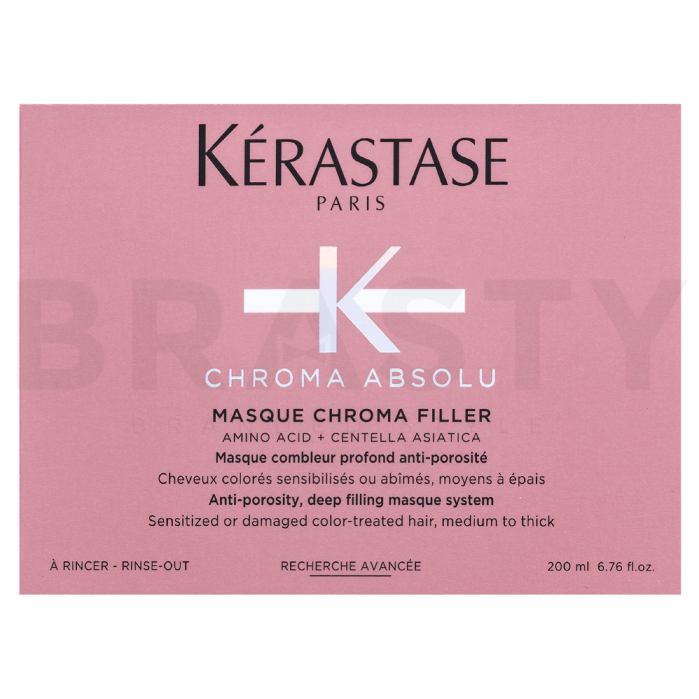 Kérastase Chroma Absolu Masque Chroma Filler je vynikající vyživující maska navržená speciálně pro péči o barvené vlasy, které potřebují intenzivní výživu, hydrataci a ochranu. Díky svému složení, bohatému na aminokyseliny a centella asiatica, poskytuje tato maska vlasům hloubkovou péči, zlepšuje jejich strukturu a zajišťuje dlouhodobou ochranu před poškozením. Tento produkt je ideální pro dosažení zdravých, silných a krásně lesklých vlasů, které zůstávají barevně stálé a odolné vůči lámání a poškození. S Kérastase Chroma Absolu Masque Chroma Filler dosáhnete profesionálních výsledků přímo z pohodlí domova a užijete si vlasy, které vypadají nádherně každý den.